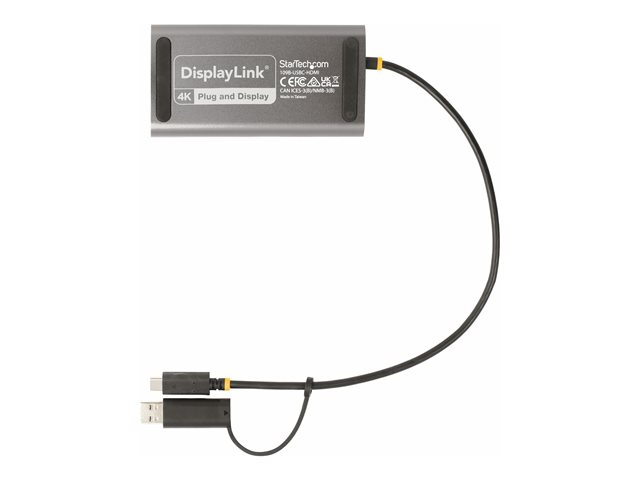 StarTech.com USB-C to Dual-HDMI Adapter, USB-C or A to 2x HDMI, 4K 60Hz, 100W PD Pass-Through, 1ft (30cm) Built-in Cable, External Video Graphics Adapter - USB to HDMI Multi-Monitor Converter for Laptop (109B-USBC-HDMI) - Adaptateur vidéo - Conformité TAA - USB type A, 24 pin USB-C mâle pour 2 x 19 pin HDMI Type A, 24 pin USB-C femelle - 30 cm - gris - support 4K, actif 109B-USBC-HDMI