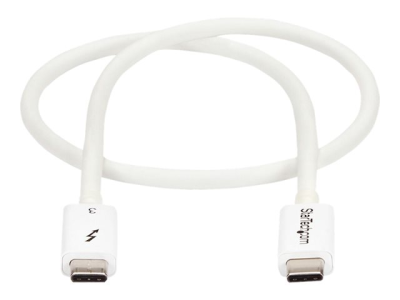 StarTech.com 1.6ft (50cm) Thunderbolt 3 Cable, 40Gbps, 100W PD, 4K/5K Video, Thunderbolt-Certified, Compatible w/ TB4/USB 3.2/DisplayPort - Câble Thunderbolt - 24 pin USB-C (M) pour 24 pin USB-C (M) - USB 3.1 Gen 2 / Thunderbolt 3 / DisplayPort 1.2 - 50 cm - support 4K - blanc - pour P/N: CDP2HDUACP, CDP2HDUACPW, PEXUSB321C, TB33A1C