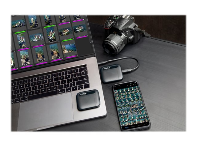 Quelle quantité de données pouvez-vous transporter entre vos doigts? Avec le SSD portable Crucial X6, la réponse est : beaucoup! Que vous téléchargiez des vidéos pour voyager, que vous organisiez vos photos de famille, que vous collaboriez avec des camarades de classe, ou que vous partiez pour une aventure extraordinaire, le Crucial X6 est abordable et prêt à vous accompagner n'importe où.