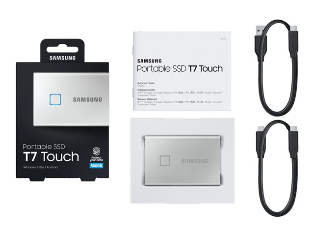 Samsung T7 Touch MU-PC500S - SSD - chiffré - 500 Go - externe (portable) - USB 3.2 Gen 2 (USB-C connecteur) - AES 256 bits - argent MU-PC500S/WW