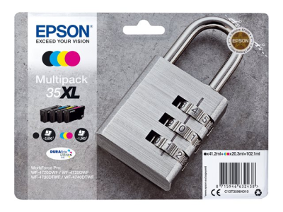 Epson 35XL Multipack - Pack de 4 - XL - noir, jaune, cyan, magenta - original - emballage coque avec alarme radioélectrique/ acoustique - cartouche d'encre - pour WorkForce Pro WF-4720, WF-4720DWF, WF-4725DWF, WF-4730, WF-4730DTWF, WF-4740, WF-4740DTWF