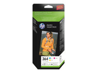 HP 364 Series Photo Value Pack - Pack de 3 - jaune, cyan, magenta - blister - cartouche imprimante/kit papier - pour Deskjet 3520; Photosmart 5520, 55XX B111, 6520, 7510 C311, 7520, Wireless B110