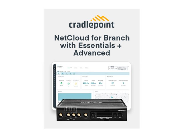 Cradlepoint NetCloud Essentials and Advanced for Branch Routers - Licence d'abonnement (3 ans) - Europe - avec AER2200 router with WiFi (600Mbps modem)