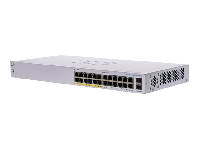 Cisco Business 110 Series 110-24PP - Commutateur - non géré - 12 x 10/100/1000 (PoE) + 12 x 10/100/1000 + 2 x SFP Gigabit combiné - de bureau, Montable sur rack, fixation murale - PoE (100 W) CBS110-24PP-EU